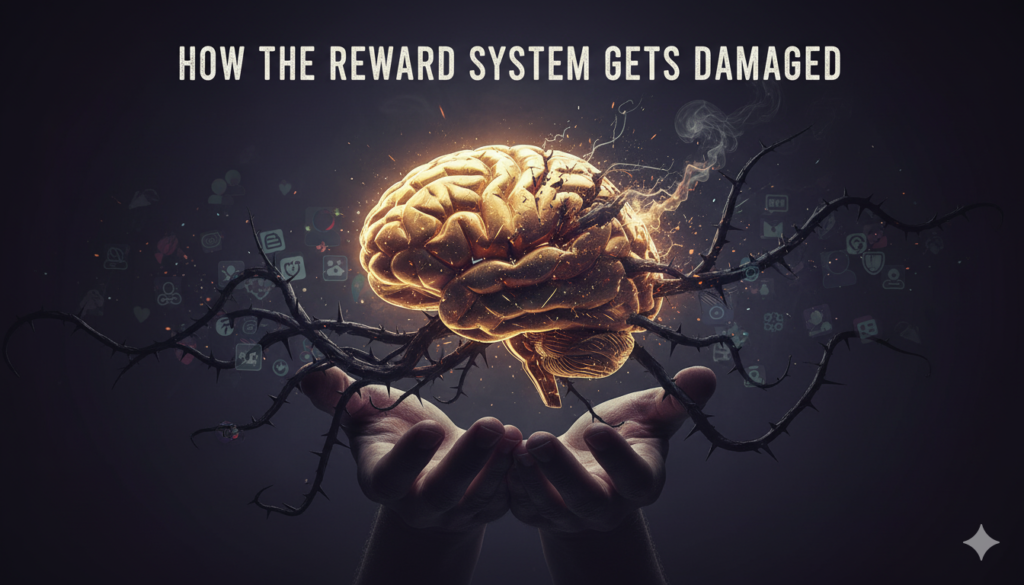 This process can lead to what scientists describe as dopamine imbalance or reward system dysfunction.