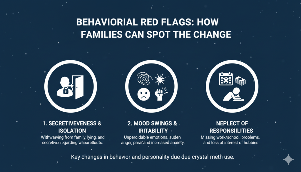 For many families, the behavioral shifts are more jarring than the physical ones. Crystal meth rewires the brain’s impulse control and emotional regulation.