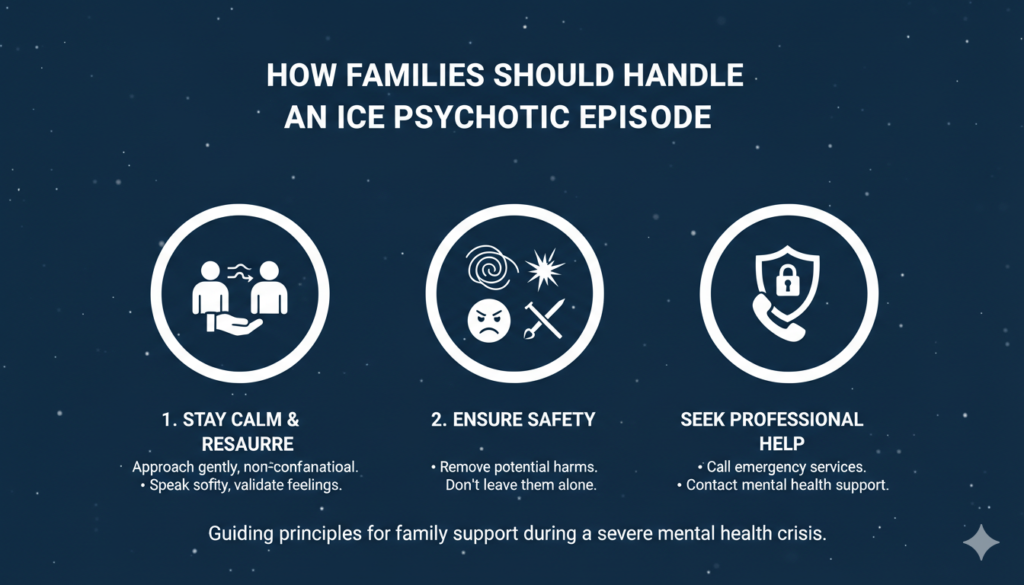 Safety must be your absolute priority. A person with ICE psychosis is not thinking rationally and can become violent if they feel cornered or threatened.[12]