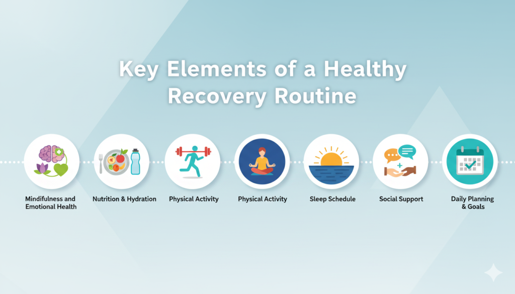 Creating a recovery routine does not require rigid schedules or unrealistic expectations. Instead, it involves building consistent habits that support physical, emotional, and mental health.
