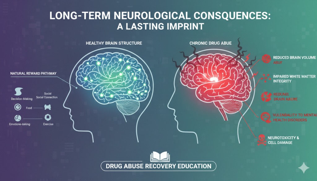 The repeated exposure to drugs can lead to long-lasting structural and functional changes in the brain. While some degree of recovery is possible with abstinence, certain effects can persist for extended periods or even be permanent.